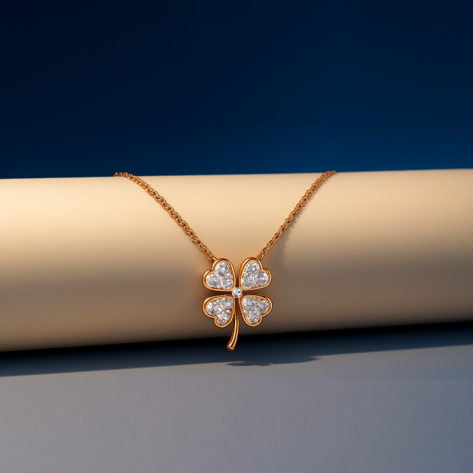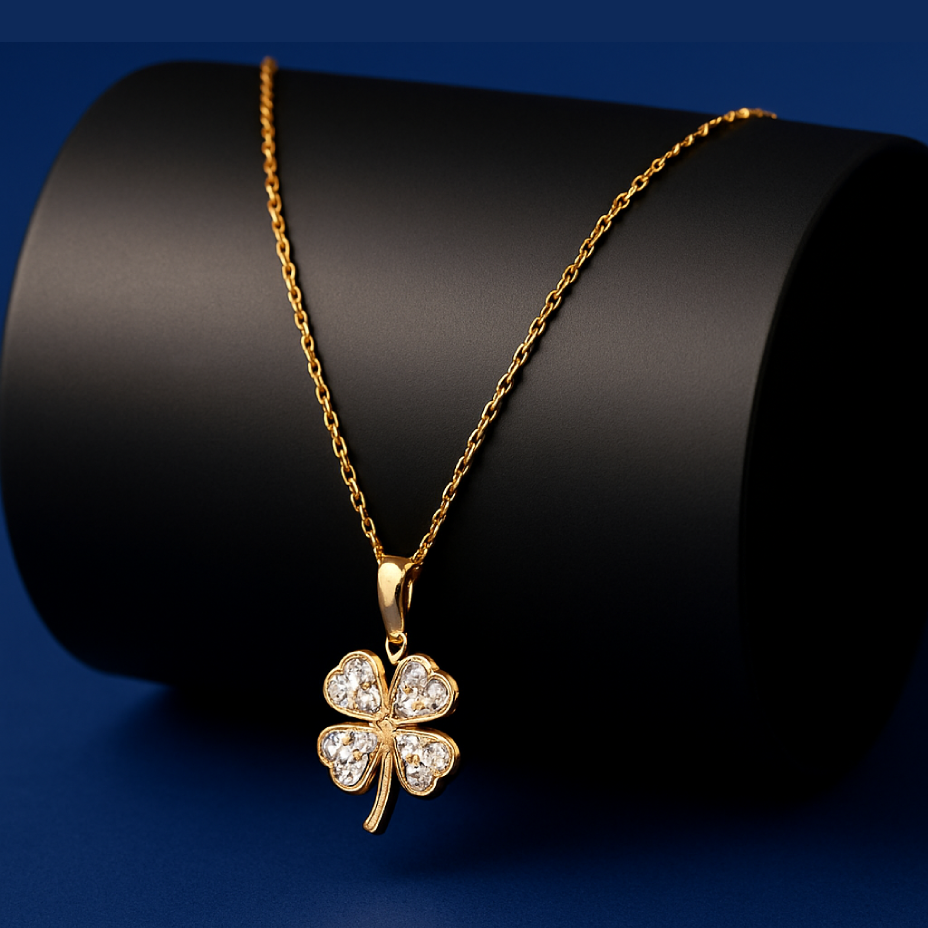 A Korean-inspired pendant necklace featuring a delicate four-leaf clover — a timeless symbol of luck, love, and happiness.