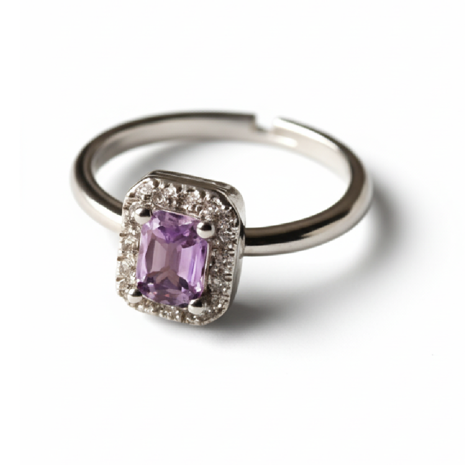 Absolutely beautiful ring! The unique square design stands out, and the lavender stone is vibrant and classy. It’s ideal for gifting or wearing daily. Highly recommend!