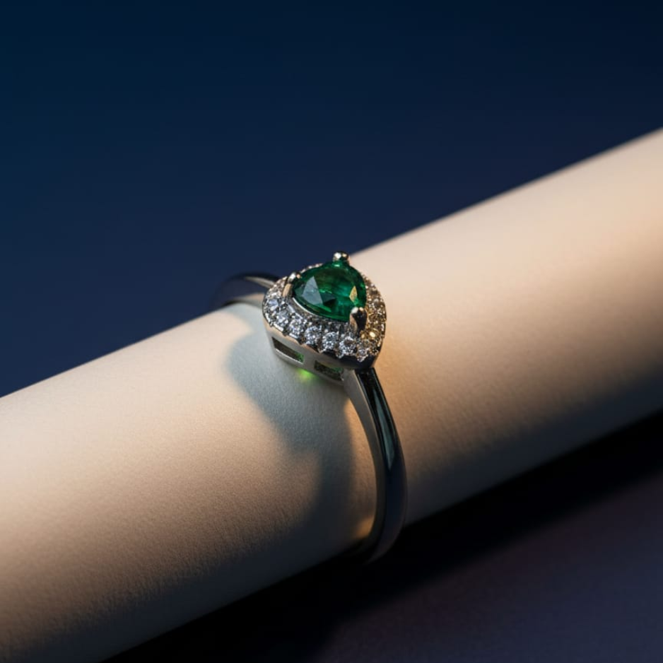 A delicate pear-shaped green stone surrounded by shimmering accents on a sleek adjustable silver band. Simple and elegant, this ring is perfect for everyday style.